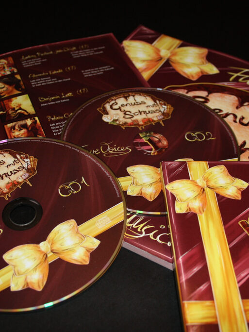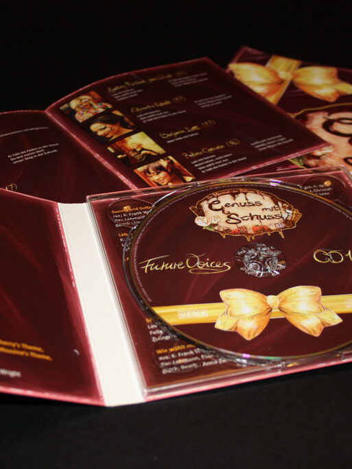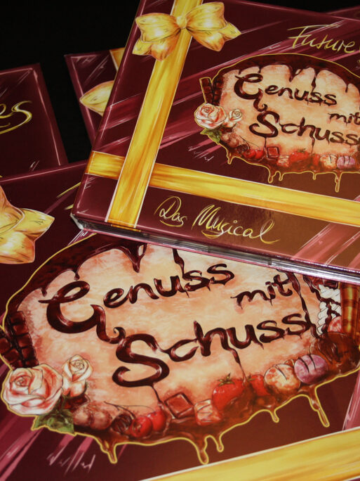 Ehrenamt aus Überzeugung und Heimatverbundenheit. Für das selbst geschriebene Musical “Genuss mit Schuss“ und weitere Eigenproduktionen des Jugendchors “Future Voices“ aus Heilbad Heiligenstadt hat PINKBRAIN seid dem Jahr 2012 den gesamten Grafikbereich übernommen. Neben den Layouts und der Produktion der Plakate und Programmhefte mit Hintergrundinformationen zum Stück sowie Bildern der Schauspieler wurden Digipacks inklusive Labelbedruckung, Tassen und Roll-Up-Banner entworfen und produziert.