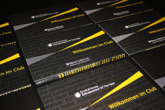 Edle Optik durch Schmuckfarben, Mattlackierung und eine besondere Falttechnik.